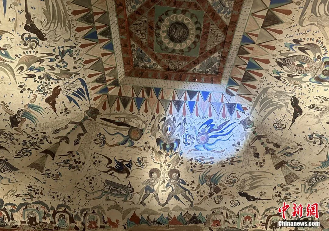 敦煌莫高窟第285窟(原大復(fù)制窟)窟頂?shù)姆?、女?huà)z圖像。丁思 攝