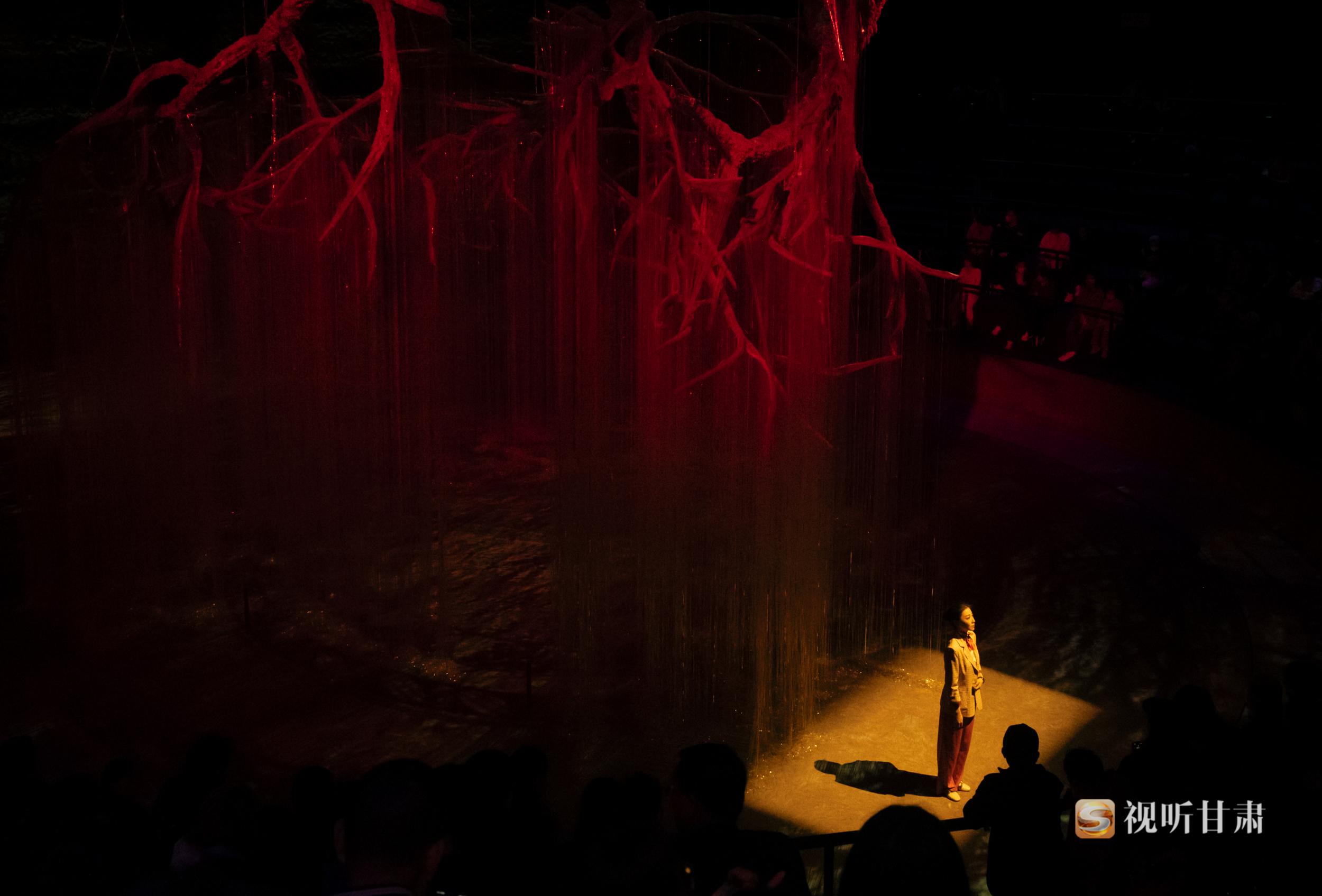 《天水千古秀》劇場(chǎng)內(nèi)部設(shè)置了罕見的,超大型聯(lián)動(dòng)舞臺(tái)機(jī)械裝置、3D影像裝置、移動(dòng)巨幕裝置、首創(chuàng)了許多特技效果,引領(lǐng)觀眾進(jìn)入壯觀瑰麗的幻境空間。不同于以往坐在觀眾席的觀演體驗(yàn),《天水千古秀》的觀眾是以邊走邊看的形式觀看演出,通過上、下兩條情景通道,在多維度的劇場(chǎng)空間內(nèi)與歷史人物互動(dòng),感受身臨其境的奇妙體驗(yàn)。演出采用邊行走邊觀看的形式,使觀眾感受到的不僅限于平面,而是在多維度表演空間內(nèi)與歷史人物互動(dòng),感受身臨其境的奇妙體驗(yàn),運(yùn)用現(xiàn)代的思考方式探索天水的遠(yuǎn)古世界,來深入探索伏羲哲學(xué)“陰陽”世界觀,以“沉浸式”的方式讓觀眾更加直觀的感受歷史、貼近歷史。