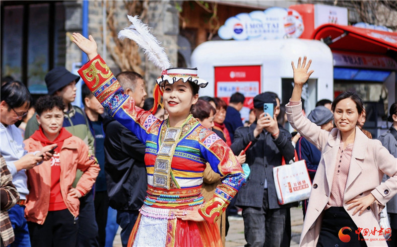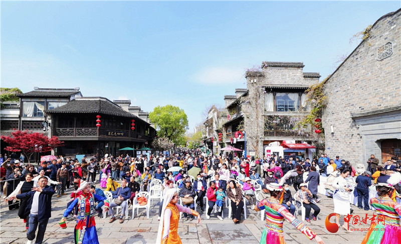 “快閃+路演”主題宣傳由甘肅民族風(fēng)舞蹈串燒的快閃活動(dòng)拉開(kāi)序幕,西北特色民族舞蹈與江南風(fēng)情老街相遇,記憶里的南方與北方相融,這樣一幅情景相依又充滿矛盾的特殊“舞臺(tái)畫(huà)卷”,迅速吸引了景區(qū)大批游客駐足觀賞。