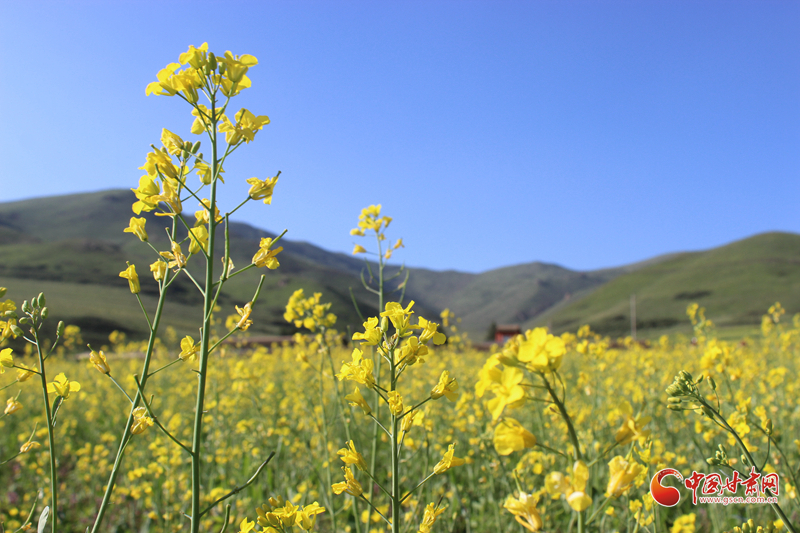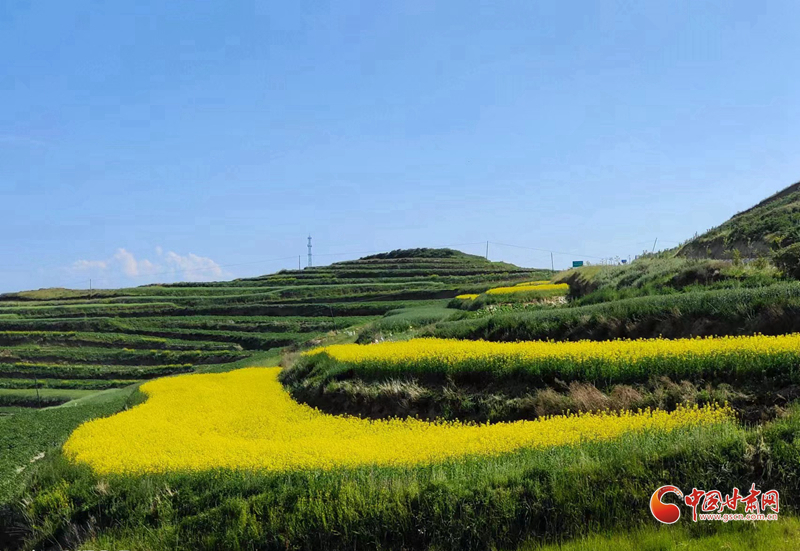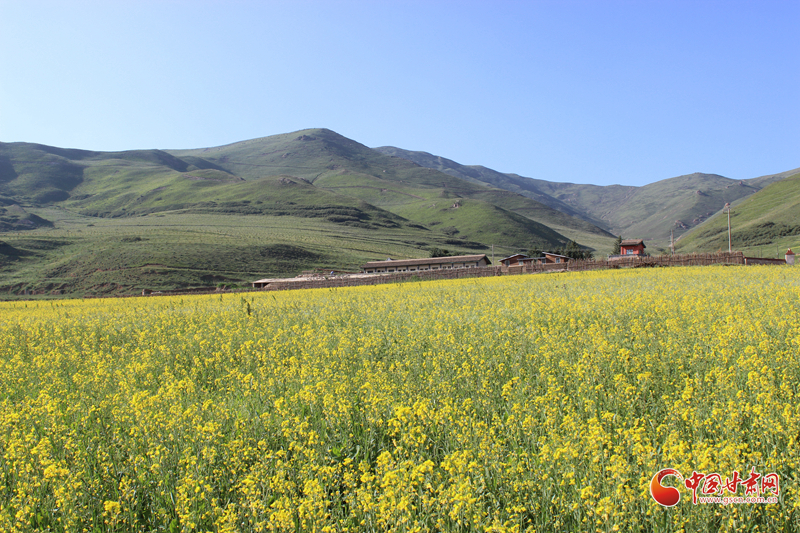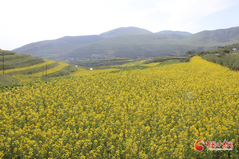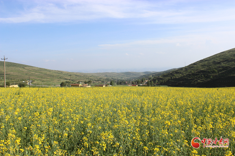 沿著普銀公路來(lái)到了被譽(yù)為“臨洮最北面的鄉(xiāng)村”的上營(yíng)瓦窯灘村。這是個(gè)寧?kù)o美麗的小山村,秋高氣爽,這里有一大片黃澄澄的油菜花地。一下車,站在普銀公路邊上,一眼望去,田間地頭,成片的油菜花與藍(lán)天白云青山交相輝映,村舍藏匿于廣闊的油菜花叢中,蜜蜂、蝴蝶在花叢中翩翩起舞,恰似一幅美麗的田園畫卷。