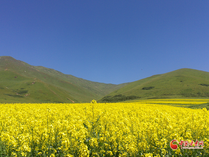 大山深處,秋風(fēng)嬉戲,藍(lán)天澄碧,大地金黃,白云悠然。蜂鳴,蝶舞,花香混合著泥土的芬芳,天地猶如一幅散著金光的風(fēng)景畫,渾然一體,如夢(mèng)似幻。赤腳踩在綠油油的嫩草上,癢癢的,柔柔的,酥酥的。如母親的懷抱,舒適而安寧。花海更是孩子們的天堂,在里面打滾,摔跤,捉迷藏……揮灑無(wú)邪的童真。這時(shí),或在花間嬉戲,或在花徑漫步,或在山野奔跑,或干脆在觸手可及的藍(lán)天白云下,枕著花香,靜靜一眠,把自己放逐在原野上,身心兩忘,回歸一個(gè)沒(méi)有謊言的世界。安靜,正如無(wú)邊無(wú)際的虛空;澄澈,又像一望無(wú)垠的凈土。清新的空氣,寂靜的原野,一切都是那么凈,靜。一切都融入自然,回歸純真。圣潔,澄凈,忘世,忘機(jī),忘我,又那么浪漫。油菜開始開花。一開始是綠葉叢中一點(diǎn)黃,就好像是綠色的海洋里揚(yáng)著黃色的一桅風(fēng)帆。接著是倆桅三桅……有一天你會(huì)發(fā)現(xiàn)綠色的海洋消失了,取而代之的是一片金黃色的閃著耀眼光芒的海平面。微風(fēng)過(guò)處,黃色的波濤此起彼伏,后浪推著前浪。有蜜蜂在花間穿梭,時(shí)而飛起,時(shí)而停在花蕊中辛勤地采著花粉,工作間隙還不忘嗡嗡地哼著歌。蝶兒翩翩飛舞在花海,兒童急急追蝴蝶。好一幅“兒童急走追黃蝶,飛入菜花無(wú)處尋”的畫面。白色蝶兒猶如黃色海面上飄著的白云,黃色蝶兒歇息在花的枝頭,你分不清是蝶兒變成了花還是花變成了蝶兒。山區(qū)的油菜花和川區(qū)的油菜花又有著迥然不同的風(fēng)采。