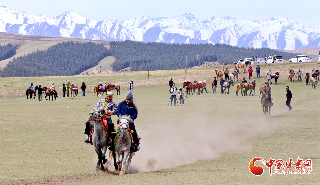 “五一”假期,甘肅省張掖市肅南裕固族自治縣康樂草原景區(qū)“民族大團(tuán)結(jié)”賽馬活動(dòng)拉開帷幕,騎手們?cè)谄钸B山下的康樂草原上展開了民族走馬、速度賽馬角逐,吸引了眾多游客前往觀賞賽馬和領(lǐng)略雪山、森林、草原為一體的祁連山美麗景色。