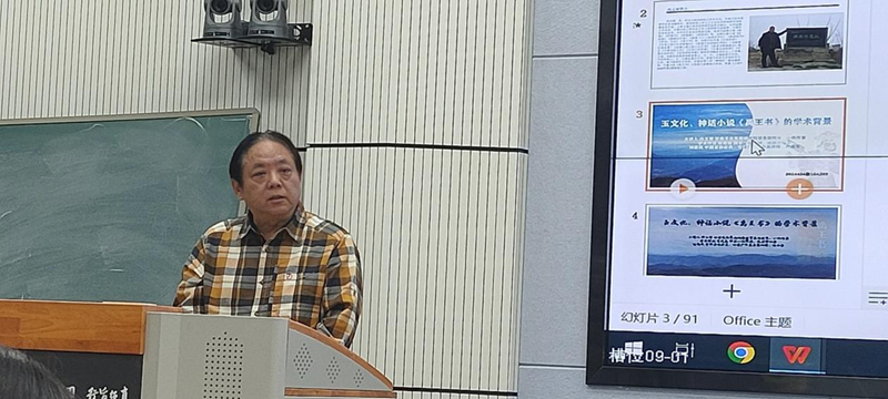 馮玉雷一直認認真真,埋頭干事。他心中有一個非常宏大的目標,向著這個目標行進過程中,腳踏實地。前幾年他在西北師范大學首開公選課《中國玉文化》,把玉文化作為專門的一門課來講,具有開拓性。玉文化作為一門學科,在全國各大高校此前還沒有先例,馮玉雷先生做了一件非常有意義的事情。這次講座對我非常有啟發(fā)。從這門課的內(nèi)涵來講,其實又是一個延續(xù):對傳統(tǒng)文化也好,考古文化也好,對甘肅省乃至整個中華大地,從玉文化開始出現(xiàn),發(fā)展到現(xiàn)在,就是一種延續(xù)。玉和玉器至堅至柔,至圣至潔,卻默默無言,但是它們告訴了我們很多以前不知道或者沒有意識到的信息,從重見天光的那一刻起,有無數(shù)信息在源源不斷的釋放,就看人們?nèi)绾卫斫?,如何解讀。如果不研究、發(fā)現(xiàn)這些玉器的內(nèi)涵,那還是相當于某種意義上的沉睡。馮玉雷創(chuàng)作小說,研究玉文化,還組織十幾次考察活動,國內(nèi)的有些大家都參與,這像不像流動的學術討論會?他的長篇小說《禹王書》出版剛剛一個月,據(jù)我所知,“玉文化、神話小說《禹王書》的學術背景”講座是首次分享,他把研究成果、創(chuàng)作成果第一時間通過課堂與同學們分享,我仿佛看到他帶著學生勇往直前,義無反顧地向前走著,這本身就是玉文化精神的傳承和發(fā)揚!我感覺到馮玉雷《禹王書》的思緒上下翻飛,縱橫馳騁,騰躍五千年。小說中有非常核心的價值內(nèi)涵,就是玉文化本身所具有的、深深進入到我們民族根脈中的文化內(nèi)涵,同時,又有就是對文學的一種激發(fā)。小說中的神話人物以及他們之間的交流、故事、語言,還有那些玉器,都非常神奇??梢灶A想,這本書的后延性非常長遠,希望玉文化班的同學能夠在馮玉雷老師帶領下,傳承發(fā)揚玉文化,完成從璞玉到玉器的轉(zhuǎn)化!