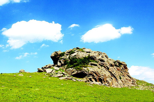 秦人遠去了,只留下那些讓后人至今懷想不已的地名,諸如石鼓山、景墩梁、牧馬梁、上店子、下店子、大卜峪、瓦泉峪等,而尤以石鼓山最為著名,著名得連那部白發(fā)三千丈的《水經(jīng)注》里,都記載著它的故事:“山在梧中聚,有石鼓不擊自鳴,鳴則兵起。漢成帝鴻嘉三年,天水冀南山有大石自鳴,聲隱隱如雷,有頃止,聞于平襄二百四十里,野雞皆鳴。石長丈三尺,廣厚略等,在崖勒,去地百余丈,民俗名曰石鼓。”石鼓山是朱圉山最高峰,海拔2625米,山峰陡峭,人跡罕至,遠望如石鼓,近看似臥牛,茂林幽泉,森秀無比。初春時節(jié),萬物透綠而石鼓白雪皚皚;大雨前夕,飛鳥翱翔而山上煙云彌漫。更為神奇的是,山丘之巔,突兀一石,酷似一頭臥北朝南的耕牛,翹首做犀牛望月之狀,人稱臥牛山。臥牛山石頸之下,有一巨石,其面圓而平,每當正午陽光直射之時,遠遠望去,石面宛如獸皮所蒙,恰如一面威風凜凜的巨型戰(zhàn)鼓,恍惚之中,有如雷聲隱隱而來,民呼之曰石鼓,石鼓山因此得名。石鼓山素來以厚重的人文歷史和優(yōu)美的草原風光而著稱,尤為聞名的“石鼓擎雪”,自古就是“甘谷八景”之一。千百年來,石鼓山甘愿舍棄繁華,遠離人世,在淡泊寧靜的歲月中,固執(zhí)而堅定地守望古坡,守望古坡人家。