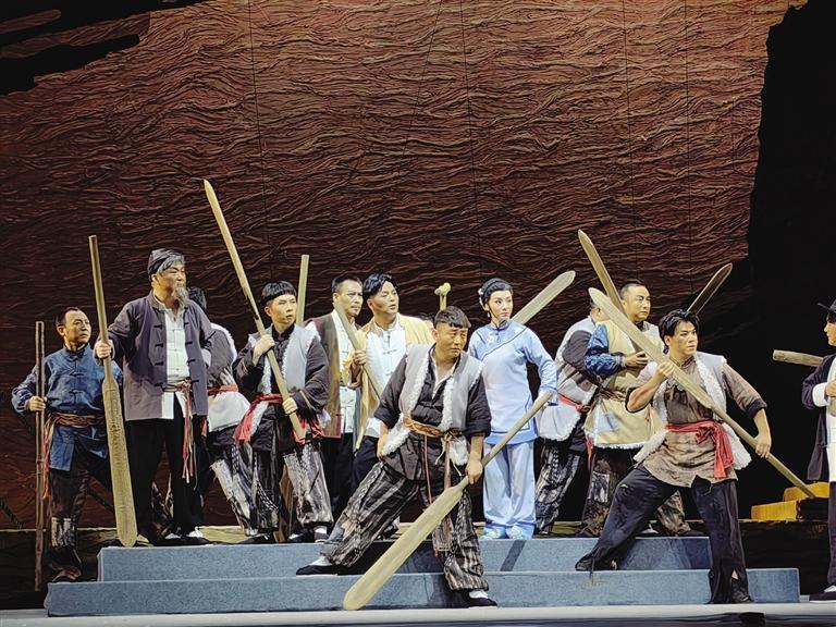 中國甘肅網(wǎng)5月21日訊 據(jù)蘭州晚報(bào)報(bào)道(記者 高宏梅 文/圖)酣暢淋漓的“花兒”唱出了黃河兒女的人間悲喜,韻味濃厚的“嘛簧”一唱眾幫,隴劇戲曲張力無限,“羊皮筏子賽軍艦”的熱血故事成就走心之作……5月19日晚,國家藝術(shù)基金資助項(xiàng)目原創(chuàng)隴劇《大河?xùn)|流》在黃河劇院成功首演,隴劇“梅花獎”甘當(dāng)配角,“青春力量”首挑大梁,出新出彩的優(yōu)異表現(xiàn)贏得滿堂彩。