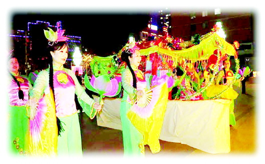 因著葫蘆河的哺育,也有了歷代風(fēng)雅文人、賣漿者流或言志或抒情的傳承,秦安蠟花舞這項(xiàng)民間舞蹈藝術(shù)在千年的時光里熠熠生輝,散發(fā)出迷人的光彩。直至今日,表演時人們都是左手托舉花燈,右手持彩綢折扇,且花燈內(nèi)裝有點(diǎn)燃的蠟燭。