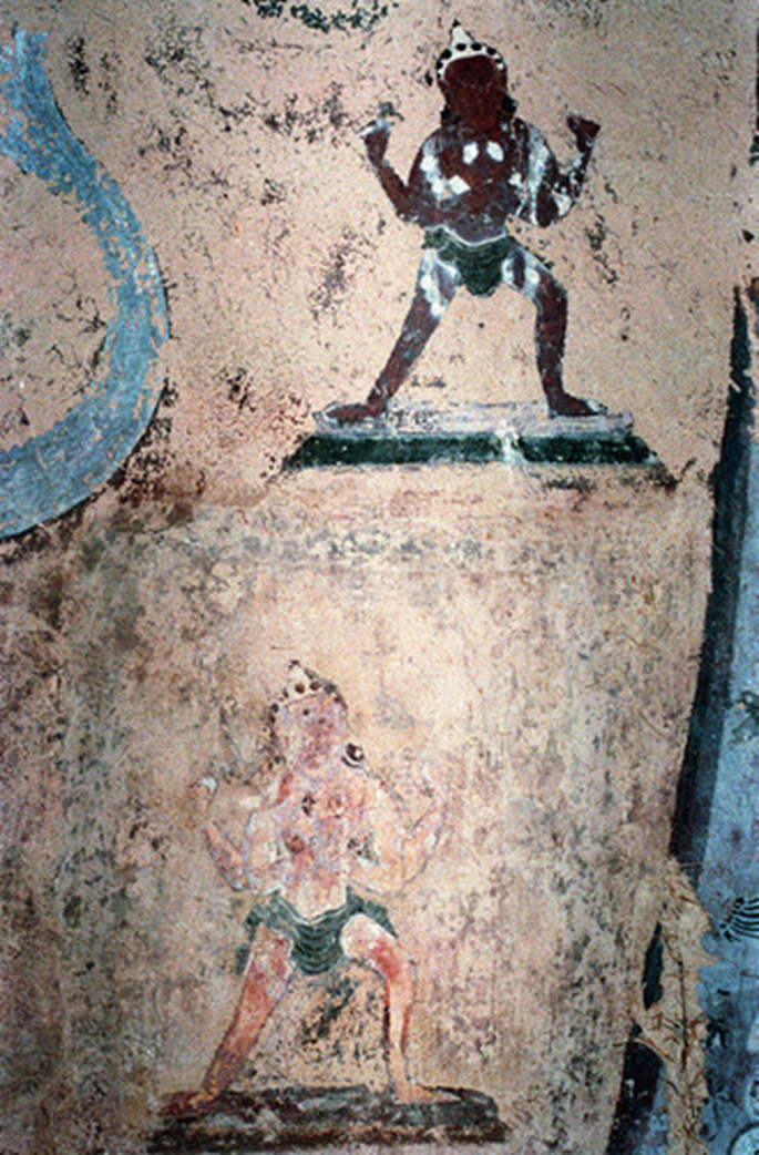 莫高窟465洞窟是從未開放過的重要洞窟之一。其內(nèi)主要珍藏有關(guān)佛教密宗的壁畫。它們屬元代(公元1206—1368年)壁畫之精華,具有很高的藝術(shù)價值。圖為修復(fù)后的被盜壁畫之二明王像(下)。新華社記者李生才攝(1989年10月7日發(fā))