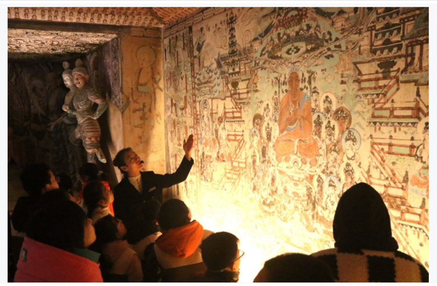 2024年,敦煌市依托當(dāng)?shù)刎S富的人文遺跡和自然景觀,大力發(fā)展文化研學(xué),建成莫高學(xué)堂、鳴沙書院等16個研學(xué)基地,推出壁畫臨摹、漢簡學(xué)堂等獨具敦煌特色的研學(xué)產(chǎn)品,讓游客和學(xué)生在參觀的同時進一步體驗敦煌文化的魅力。 據(jù)了解,敦煌市已推出冬春旅游優(yōu)惠政策,對大中小學(xué)生免市屬景區(qū)門票,莫高窟對研學(xué)團隊開放洞窟由8個增至13個,并配備資深講解員講解。