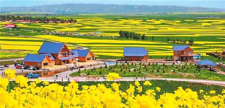 萬畝油菜花海在山間盡情綻放,錯落有致的梯田綿延起伏,遠處白墻黛瓦的村落在金色的田地中若隱若現(xiàn),那里便是坐落在扁都口外的炒面莊村。