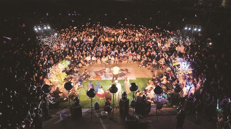今年4月以來,萬人蘭州“黃河大合唱”火爆出圈,在朋友圈和各大視頻平臺廣為傳播,與之相關(guān)的“蘭州人在黃河邊自己開演唱會”“蘭州黃河邊大合唱”“這么熱鬧的蘭州你還不來嗎”等話題也紛紛登上各大社交媒體的熱搜榜單。一時間,這項活動以“頂流”的吸引力召喚著全國各地的網(wǎng)友來到蘭州,感受一場酣暢淋漓的萬人大合唱。專程趕來參加活動的大學生小胡感慨地說:“這是燈光,是希望,是青春,是大西北的浪漫,是蘭州,是黃河之濱的浪漫。”截至目前,“黃河大合唱”活動已在三縣五區(qū)多地舉辦,演出共計近百場,累計參與游客市民50余萬人。