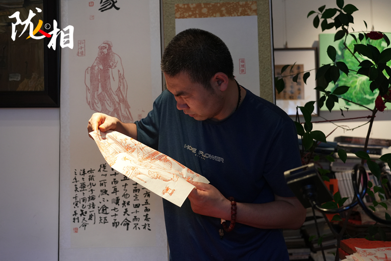 “木刻版畫最困難的步驟,就是能將原圖精準復(fù)刻,在雕刻過程中,稍有不慎便會出錯,需要全神貫注投入其中,才能在刀尖上誕生出精美的藝術(shù)品。”李安樂說,拓印前要進行刷色,首先需要制作顏料。他選擇了純色拓印,在朱砂粉中倒入明膠,加入水或酒稀釋,攪拌后顏料就制作完成了。接下來便是開始潤板,再開始刷色,最后將紙張覆蓋在木板上進行拓印,在拓印過程中,利用櫚擦或馬蓮進行摩擦拓印,等這一系列操作完成后,一幅栩栩如生的木刻版畫就呈現(xiàn)了出來。