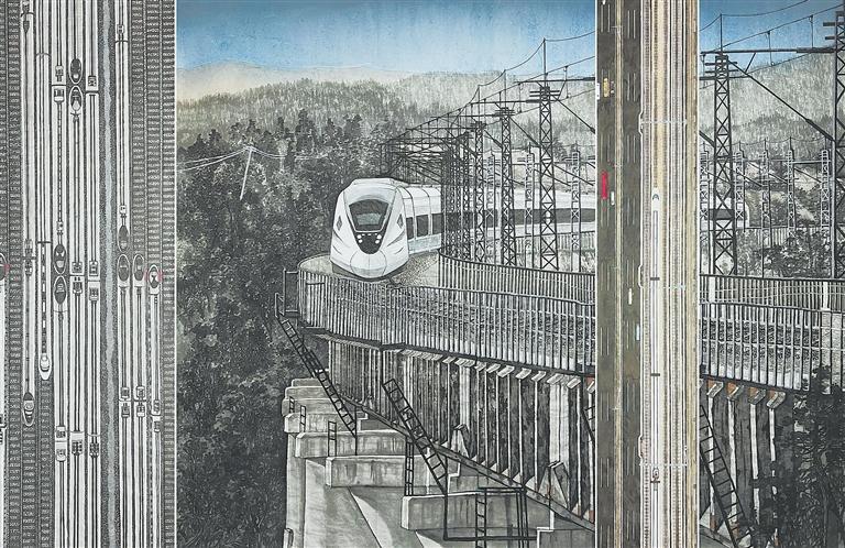 中國(guó)高鐵進(jìn)大山 (中國(guó)畫(huà)) 劉鋒