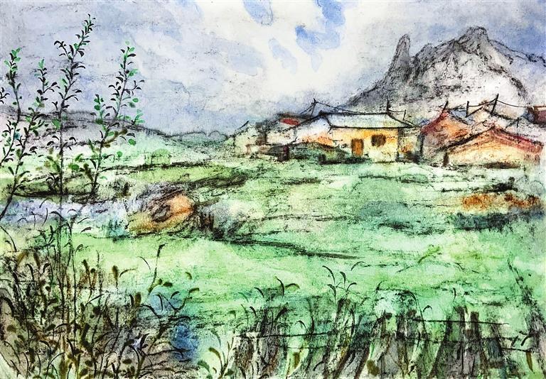 平常在畫(huà)室里畫(huà)畫(huà)時(shí),喜歡用淡淡的墨色體會(huì)與宣紙碰撞所散發(fā)出的獨(dú)特墨韻。但是描摹西部,需要更加深厚、絢爛、豐富的色彩,才能表達(dá)我們的感受,寄予我們對(duì)這片土地的深情。離開(kāi)故土,踏向遠(yuǎn)方,那份對(duì)家鄉(xiāng)的無(wú)盡思念和深深眷戀,是每一位游子心中難以言喻的情感,如同無(wú)形的紐帶,將我們與故鄉(xiāng)緊緊相連。這種情感,如同西北高原上那連綿不絕的山脈,既遙遠(yuǎn)又清晰,既冷峻又溫暖。