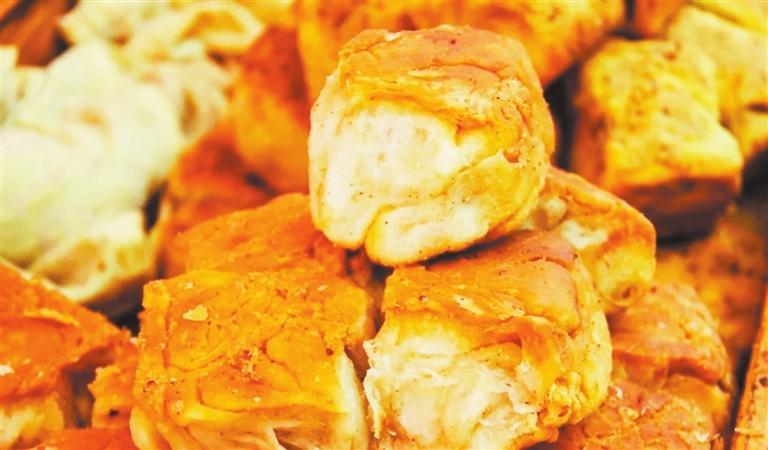 況且,一碗手搟粉里,如果啃上一個底和邊烤得脆脆的豬油盒子,手搟粉麻辣鮮香的料汁可以為豬油盒子的味道錦上添花,同時脆的口感又能與充滿韌性的手搟粉相得益彰,珠聯(lián)璧合。