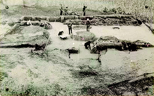 秦安大地灣遺址是1958年發(fā)現(xiàn)的,當(dāng)時(shí)正值全國文物大普查,隨即被列為省級文物保護(hù)單位。1978年開始發(fā)掘,總面積110萬平方米,現(xiàn)揭露面積13700平方米,出土房址238座、灰坑357個(gè),墓葬79座、窯38座、灶臺106座,各種骨、石、蚌、陶器、裝飾器和生活器物共計(jì)8034件。特別是房屋建筑遺址,不僅規(guī)模宏偉,而且形制復(fù)雜。在發(fā)掘中就被公布為全國重點(diǎn)文物保護(hù)單位。