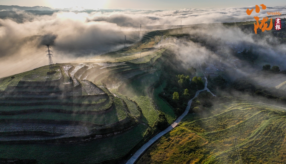 一場(chǎng)秋雨過后,甘南臨潭連綿的群山被云霧籠罩,星羅棋布的梯田上迎來收獲期,稻浪滾滾,美不勝收。