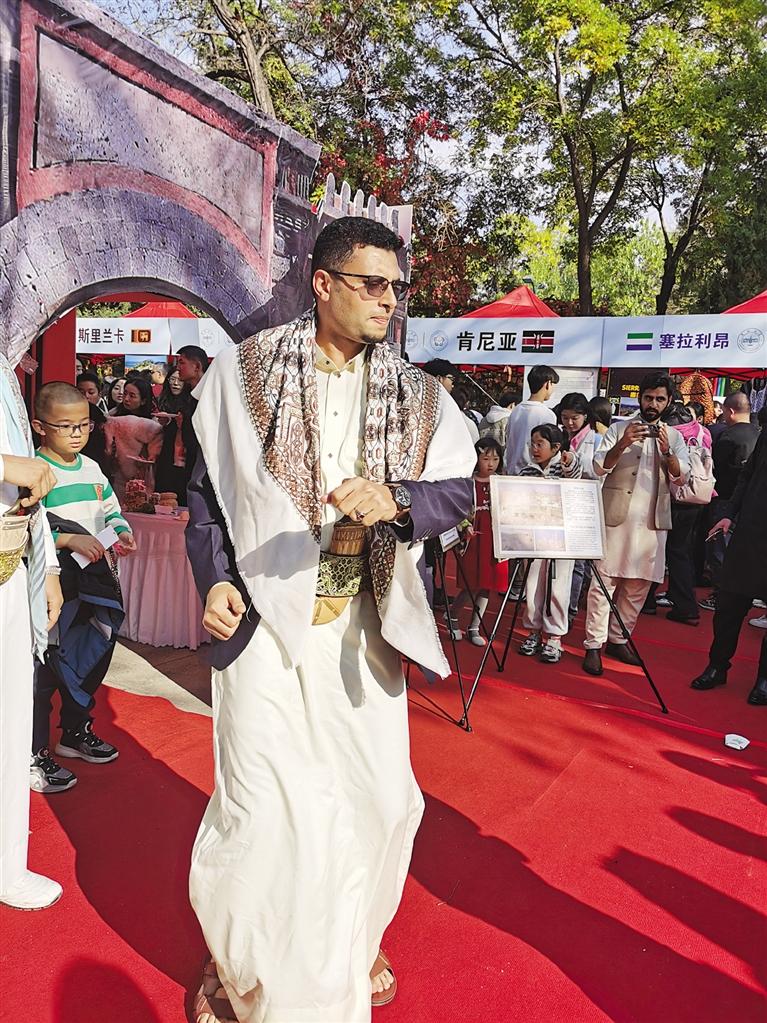 當(dāng)日下午,記者來到現(xiàn)場(chǎng)看到,中國(guó)、馬達(dá)加斯加、蘇丹、俄羅斯、德國(guó)、也門、斯里蘭卡、印度……各國(guó)展臺(tái)前人們摩肩擦踵,空氣中彌漫著美食的味道與火熱的激情。身著各國(guó)傳統(tǒng)服飾的人群中,滿目都是俊男靚女,讓人恍若置身國(guó)際大都會(huì)。