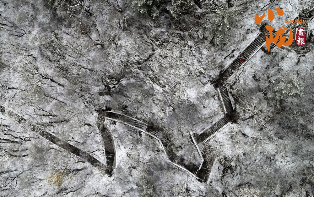從高空瞭望,目之所及皆為雪林,縹緲的云霧在林間縈繞,時(shí)而蜿蜒迂回,時(shí)而傾泄流動(dòng),勝似仙境!