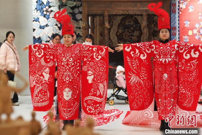 甘肅蘭州:剪紙漢服作品《龍鳳呈祥》《戲韻華裳》亮相