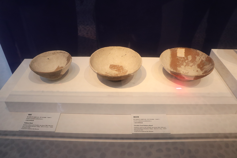 大地灣遺址出土的陶碗和圓足碗(距今約7800-7300年)。新華網(wǎng)發(fā)(郭林玉 攝)