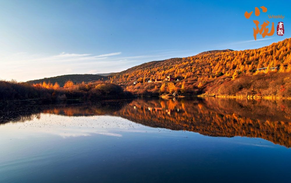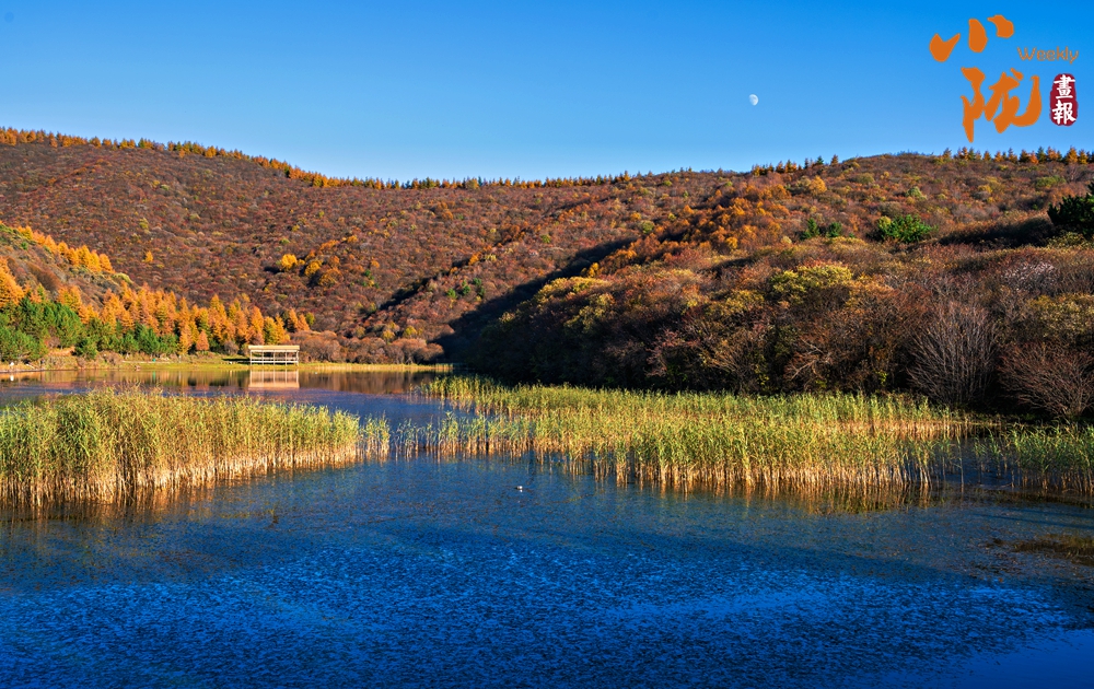 群山環(huán)抱里的朝那湫,水面開闊,清澈透明,周圍層林盡染,藍天、蘆葦?shù)褂霸诿鲀舻乃嫔?,恰似一幅絕妙的山水風(fēng)景圖。
