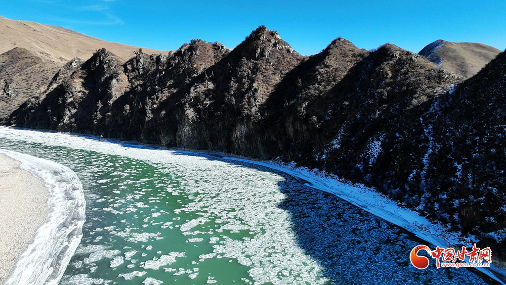 在黃河流經(jīng)甘肅的首站——瑪曲縣木西合鄉(xiāng)境內(nèi)的七仙女峰,此刻目睹黃河的壯麗風(fēng)光,流凌的出現(xiàn)為這幅天然畫卷增添了一抹濃重的色彩,晶瑩剔透的冰凌順流而下,互相碰撞,隨著河水浩浩蕩蕩蜿蜒向前,在陽光的折射下,猶如珍珠瑪瑙般璀璨,鑲嵌在母親河的懷抱之中。