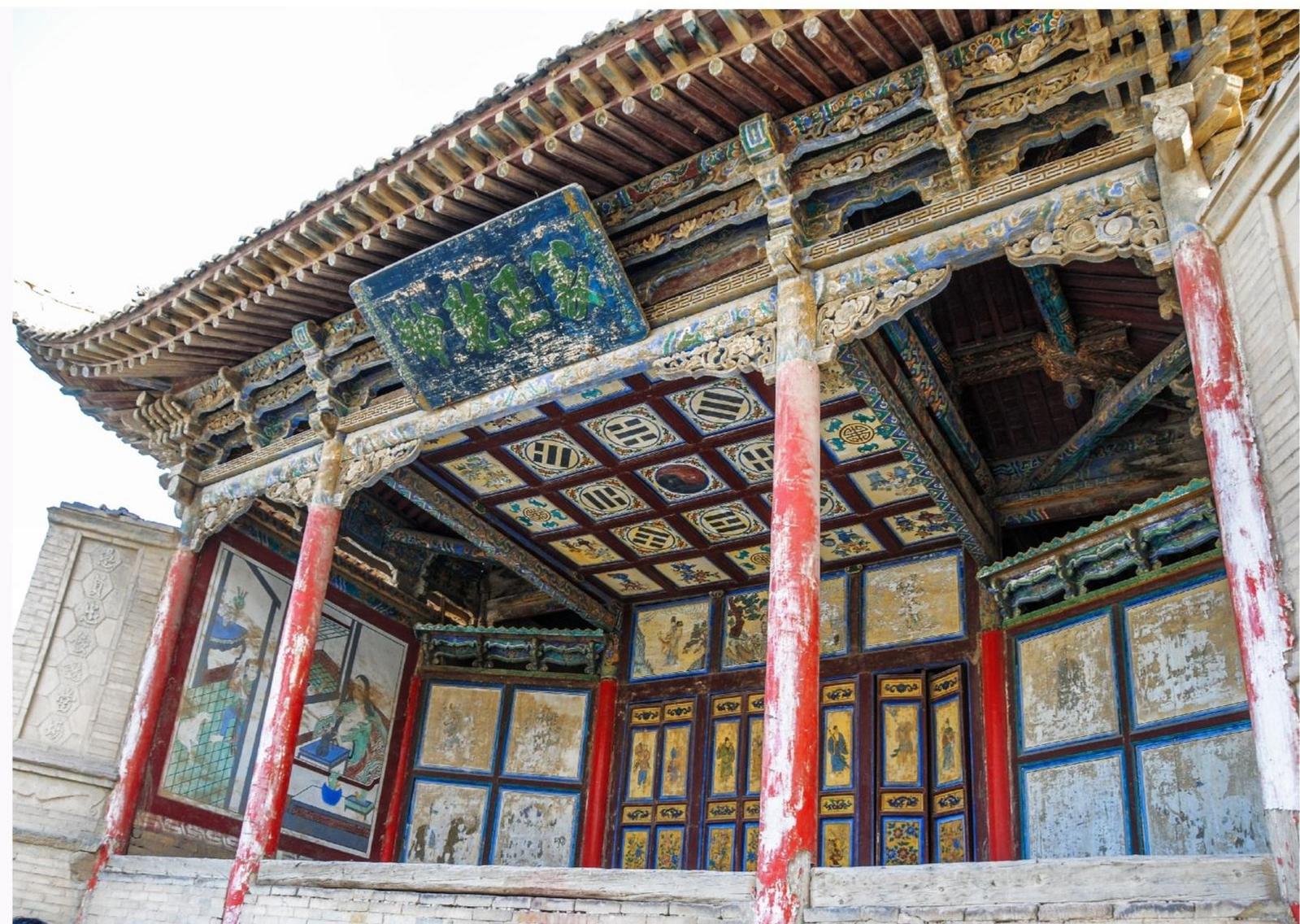 關(guān)帝廟戲樓(現(xiàn)存),關(guān)帝廟又稱武安王廟。明朝中期修建,萬歷六年(公元1578年)奉命鎮(zhèn)守嘉峪關(guān)的酒泉人佘動(dòng)帶頭重修。乾隆五十七年(公元1792年),游擊將軍袋什衣主持重修,關(guān)帝廟戲樓是當(dāng)時(shí)守城官兵、城內(nèi)居民及過往商旅的娛樂場所。戲樓位于朝宗門斜對(duì)面,南閘門內(nèi)側(cè),關(guān)帝廟對(duì)面。它的形制是典型的中國傳統(tǒng)古典戲臺(tái)。關(guān)帝廟戲臺(tái)上就有一副意義深遠(yuǎn)的對(duì)聯(lián),在兩側(cè)的八字屏風(fēng)磚上刻有:“離合悲歡演往事,愚賢忠佞認(rèn)當(dāng)場。”