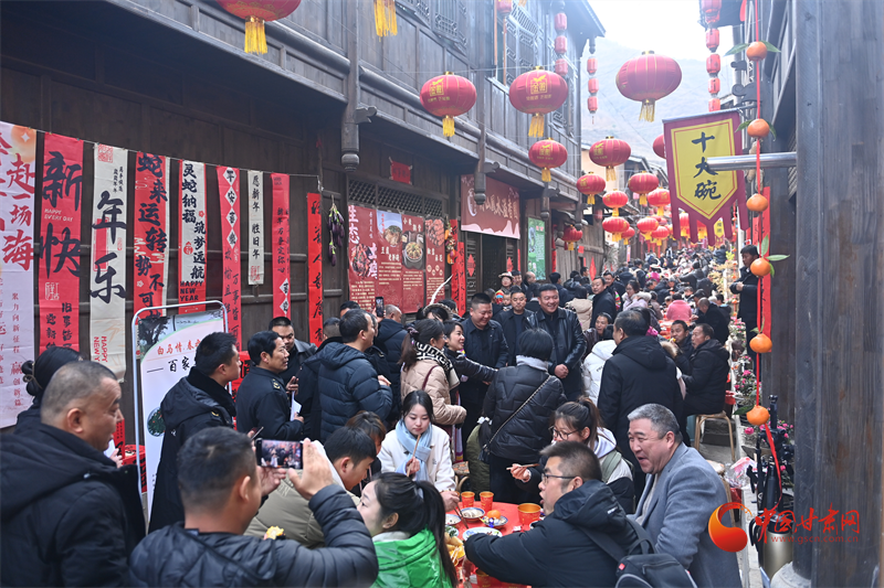 白馬民俗長街宴,美食沿著古巷分布,桌椅板凳綿延幾百米,家家戶戶帶來特色美食,一起與游客分享,帶來團圓的問候和特有的民俗體驗,臘肉、臘排都是農(nóng)家食材,十大碗更是當?shù)孛朗程厣?/p>
