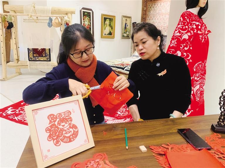 2007年,安寧剪紙被列入安寧區(qū)第一批非物質(zhì)文化遺產(chǎn)代表性項(xiàng)目名錄,2011年又成功入選蘭州市第二批非物質(zhì)文化遺產(chǎn)代表性項(xiàng)目名錄。52歲的剪紙藝術(shù)家史婷,是國家級(jí)非遺代表性傳承人。春節(jié)前夕,史婷剪紙工作室里人來人往,熱鬧非凡。她以“蛇元素”為主題,創(chuàng)作了《蛇盤兔》《雙蛇送福》等作品,還有福字、掛歷、抱枕等特色剪紙作品。一把剪刀在她的手中上下翻飛,剪出了“指尖上”濃濃的年味兒。