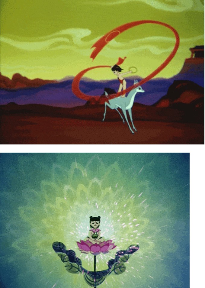 從蓮花中誕生的方式,稱作“化生”,在敦煌壁畫之中是一種相當高的境界,比凡人在母親懷孕中誕生的“胎生”,要高出很多很多。哪吒以蓮花重生這一情節(jié)的部分靈感可能也來源于此。