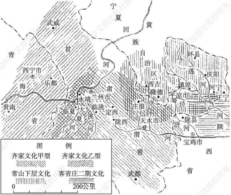 在文化傳承方面,以往認(rèn)為甘肅東部地區(qū)原始文化發(fā)展序列是從仰韶文化經(jīng)馬家窯文化(含石嶺下、馬家窯、半山和馬廠四個(gè)類型)再到齊家文化,且常山下層文化源于馬家窯文化馬家窯類型。近年郎樹德先生提出新序列是老官臺(tái)文化(大地灣遺址一期)→仰韶文化早期(半坡類型、大地灣遺址二期)→仰韶文化中期(廟底溝類型、大地灣遺址三期)→仰韶文化晚期(大地灣遺址四期)→常山下層文化(大地灣遺址五期)→齊家文化,認(rèn)為常山下層文化源頭是仰韶文化而不是馬家窯文化,且是齊家文化的重要源頭之一,糾正了齊家文化是馬家窯文化馬廠期發(fā)展來的不嚴(yán)謹(jǐn)說法,還認(rèn)為隴東地區(qū)沒有齊家文化的遺存,類似齊家的器物其實(shí)就是常山下層文化。還有學(xué)者認(rèn)為寧夏南部的“齊家文化”(菜園文化)與典型齊家文化有差異,且與常山下層文化更接近,應(yīng)歸屬于此。但學(xué)界普遍認(rèn)為常山下層文化繼承仰韶文化之后,在向西擴(kuò)展過程中,與當(dāng)?shù)赝林幕嗷ソ蝗?,逐漸演變?yōu)楠?dú)具特色的地方分支。從考古發(fā)現(xiàn)來看,常山下層文化應(yīng)屬龍山早期文化遺存,在發(fā)展進(jìn)程中,與關(guān)中地區(qū)的案板三期文化相互交流,同時(shí)向東對(duì)客省莊二期文化的形成產(chǎn)生了一定影響。不可否認(rèn),齊家文化在形成過程中,受到客省莊二期文化和馬廠文化的深刻影響,呈現(xiàn)出多元融合的態(tài)勢(shì)。故而,1979年常山遺址的發(fā)掘及“常山下層文化”的命名,為探尋渭河流域仰韶文化的發(fā)展走向以及齊家文化的起源,開辟了全新路徑,為構(gòu)建甘肅東部地區(qū)新石器考古文化編年體系提供了關(guān)鍵依據(jù)。