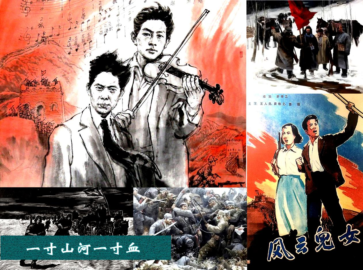 筆者在相關(guān)閱讀中接觸到許多《義勇軍進(jìn)行曲》創(chuàng)作同期的歌曲、誓詞、通電等史料。見到了《義勇軍誓詞歌》《血盟救國軍軍歌》等一些堪稱《義勇軍進(jìn)行曲》雛形的藍(lán)本。當(dāng)讀到其中“起來!起來!不愿當(dāng)亡國奴的人!……用我們身體筑起長城。……前進(jìn)??!前進(jìn)!向前進(jìn)!殺!殺!殺!”;又如“起來!不愿當(dāng)亡國奴的人們,用我們的血肉喚起全國民眾……中華民族到了最危險(xiǎn)的時(shí)候,起來!起來!”等歌詞時(shí),胸中激情難抑。這些同仇敵愾的時(shí)代強(qiáng)音最終集成于田漢、聶耳一九三五年四月完成的電影《風(fēng)云兒女》主題曲《義勇軍進(jìn)行曲》。當(dāng)年五月,隨著電影公映,《義勇軍進(jìn)行曲》迅速傳遍中華大地,成為鼓舞全國人民抵抗日本侵略的戰(zhàn)斗號角,后來又被確定為新中國的國歌并寫入憲法。筆者撫今追昔,萬千感慨,思如泉涌,寫就兩首《七律》,志念《義勇軍進(jìn)行曲》九十周年。
