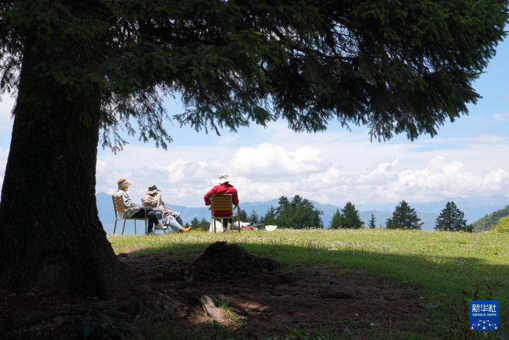幾位游客在舟曲拉尕山上露營(yíng)游玩(7月12日攝)。新華社記者 馬寧 攝