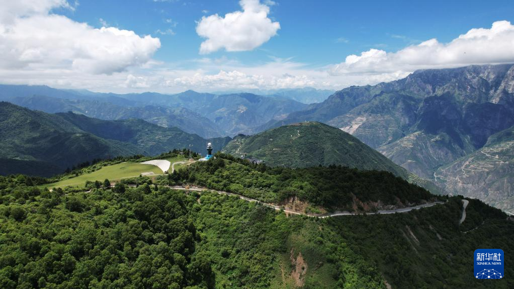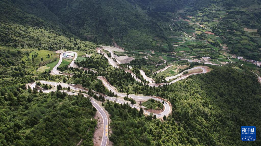 這是7月12日拍攝的舟曲“簪花之路”風(fēng)景廊道沿線風(fēng)光(無人機(jī)照片)。新華社記者 陳斌 攝