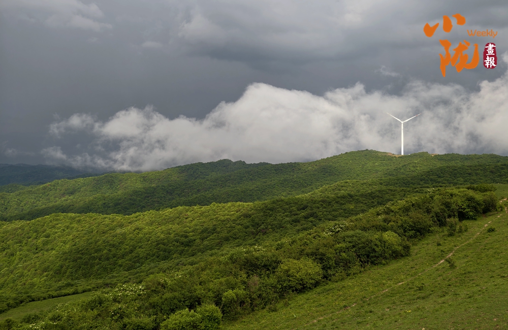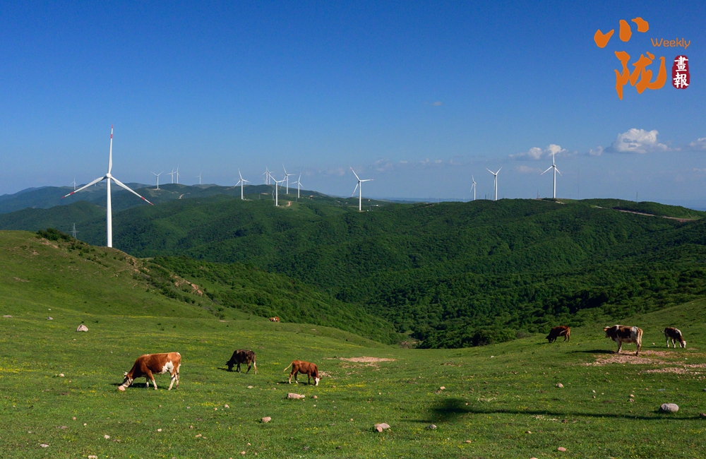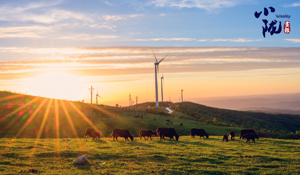 廣闊的牧場,一望無垠。綠油油的牧草覆蓋整片天地,宛如一片綠色的海洋。草原上游走的牛羊,與天空浮云、遠景的群山、矗立的風力發(fā)電機交相輝映,極目遠望、蔚為壯觀,構成關山古道一道靚麗風景線。
