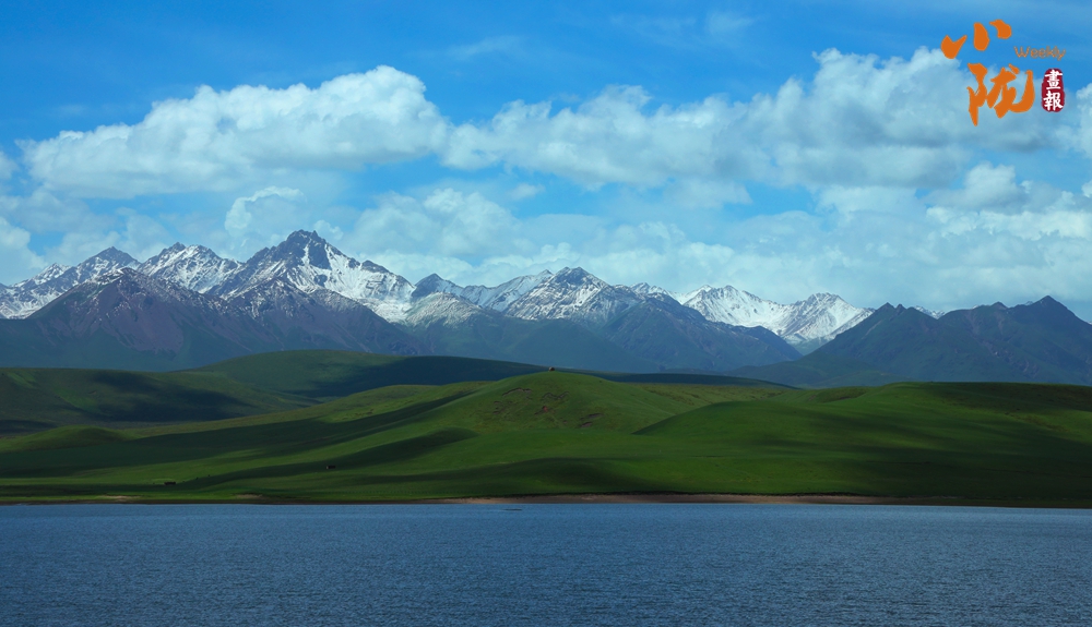 抬頭仰望,巍峨的祁連山屹立在天地之間,如同一位莊嚴(yán)的巨人。山頂終年不化的積雪在陽光下閃耀著圣潔的光芒,與湛藍(lán)的天空、綠色的草地相互映襯,形成了強(qiáng)烈的視覺沖擊。近處的湖水清淺,像一塊渾然天成的翡翠,純粹得不含一絲雜質(zhì)。