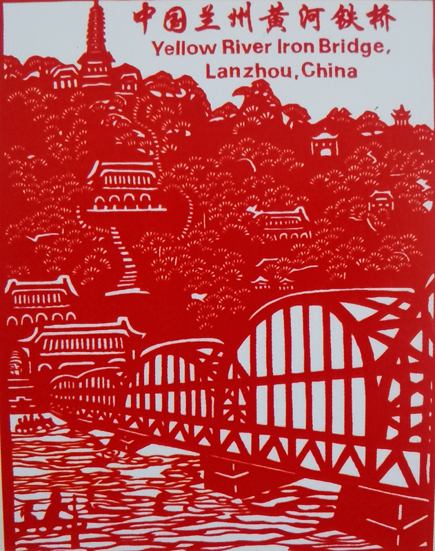 葉長(zhǎng)友剪紙《黃河水車(chē)》《蘭州黃河鐵橋》