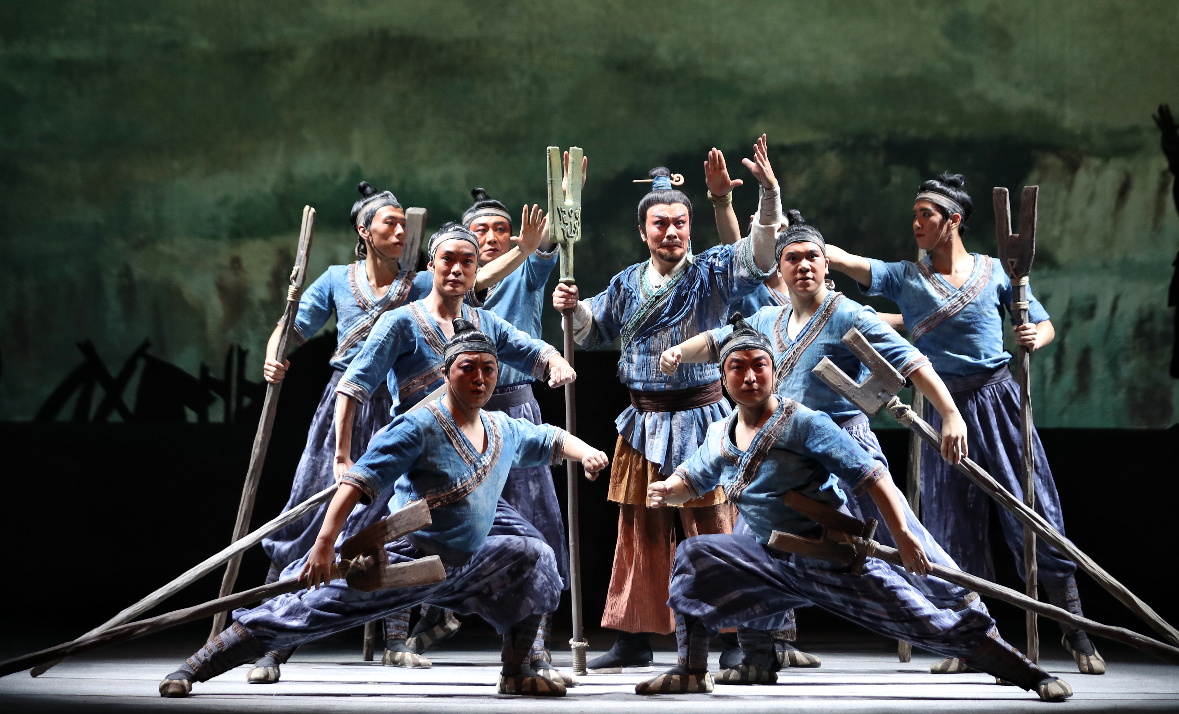 在兩個(gè)多小時(shí)的演出中,扮演“大禹”的邵炳德唱念做打俱佳,將一個(gè)人性化、頂天立地的大禹形象立于舞臺(tái)之上,三朵隴劇“梅花”雷通霞、佟紅梅、竇鳳霞,分別在劇中扮演山戎、大禹妻子涂嬌和禹母的角色,全體演員以精湛的表演,將大禹治水過(guò)程中天理與人性、親情與仇恨、生與死的抉擇演繹得淋漓盡致。