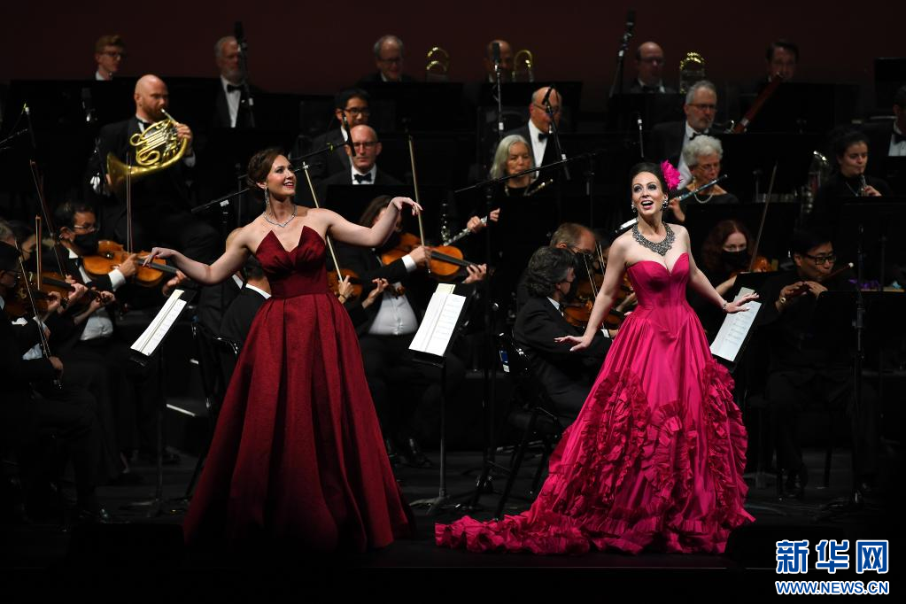 音樂會上,音樂家們演奏了小提琴協(xié)奏曲《梁?!?、二胡協(xié)奏曲《長城隨想》等佳作。兩名美國女歌唱家用中文演唱根據(jù)中國古詩詞改編的歌曲《詠鵝·詠雪》,博得觀眾陣陣掌聲。