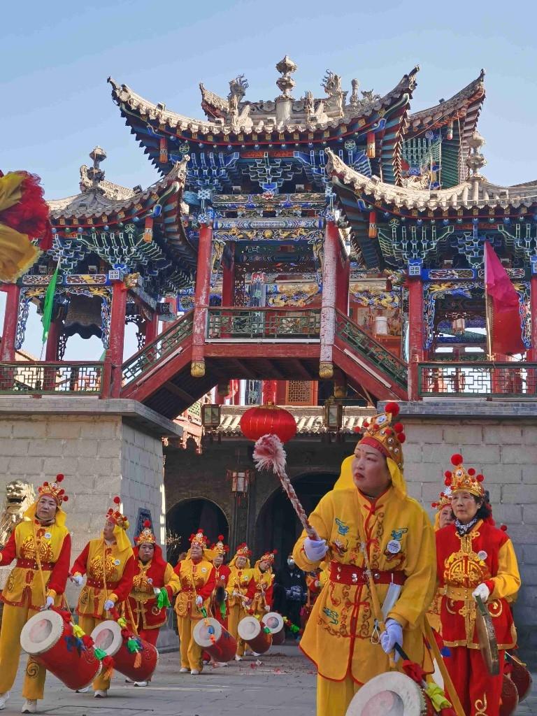 在社火展演現(xiàn)場,人員身穿鮮艷亮麗的服飾,伴隨著鏗鏘歡快的鼓點(diǎn),以飽滿的激情展示了源遠(yuǎn)流長的民間社火藝術(shù),為群眾送來了虎年的祝福。