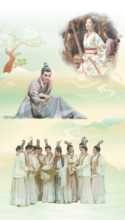 圖片從上至下依次為綜藝節(jié)目《舞千年》劇照、國(guó)風(fēng)舞蹈《紙扇書生》《孔子》劇照?! ≈茍D:趙偲汝