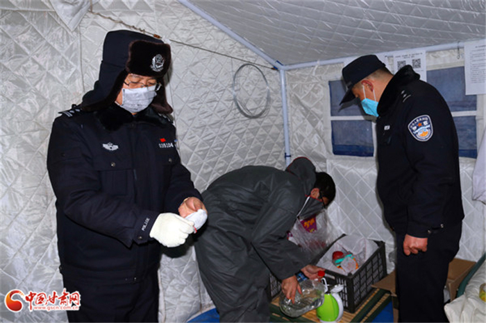 該點(diǎn)海拔近兩千米,晝夜溫差大,夜晚寒風(fēng)肆虐,氣溫驟降,但這并未打消景泰公安抗擊疫情的熱情。年近57歲的老民警寇宗金帶領(lǐng)年輕民警方連儒從大年初二就一直堅(jiān)守在這個(gè)檢測(cè)點(diǎn),最大程度做好疫情防控檢測(cè)工作。