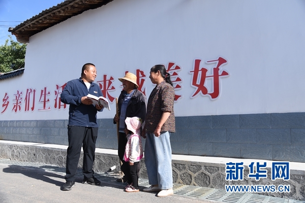 8月5日,元古堆村內(nèi),村支書朱惠軍正在進(jìn)行普法工作。新華社記者 崔翰超 攝