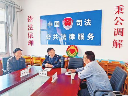 全國模范人民調(diào)解員、和政縣司法局三合司法所所長張仲勝傾心調(diào)解矛盾糾紛(4月20日拍攝)。 新甘肅·甘肅法制報記者陳孝志攝