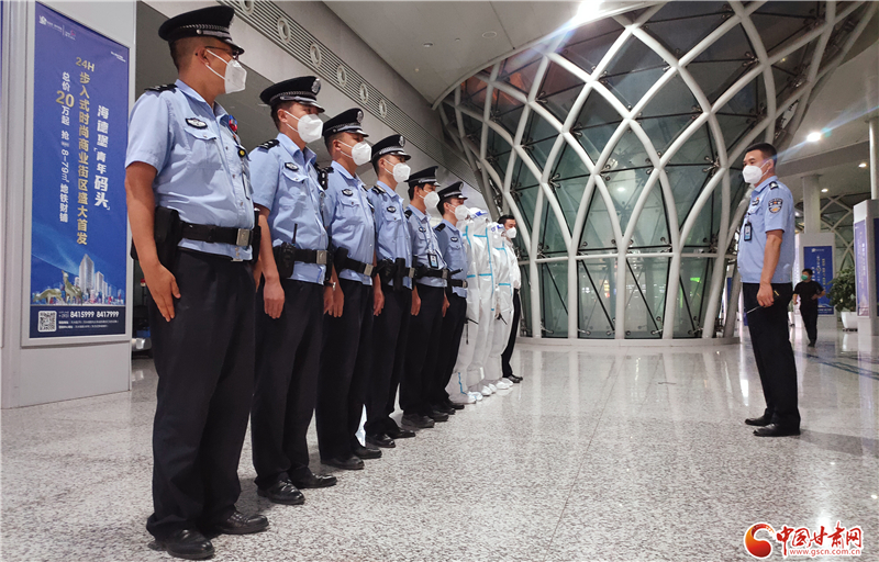 據(jù)了解,此次演練,模擬一旅客健康碼異常,不配合工作人員核驗要求,拒絕接受隔離留觀,并與防疫人員發(fā)生爭執(zhí)造成現(xiàn)場秩序混亂為背景,進一步檢驗隊伍涉疫應急處置能力。
