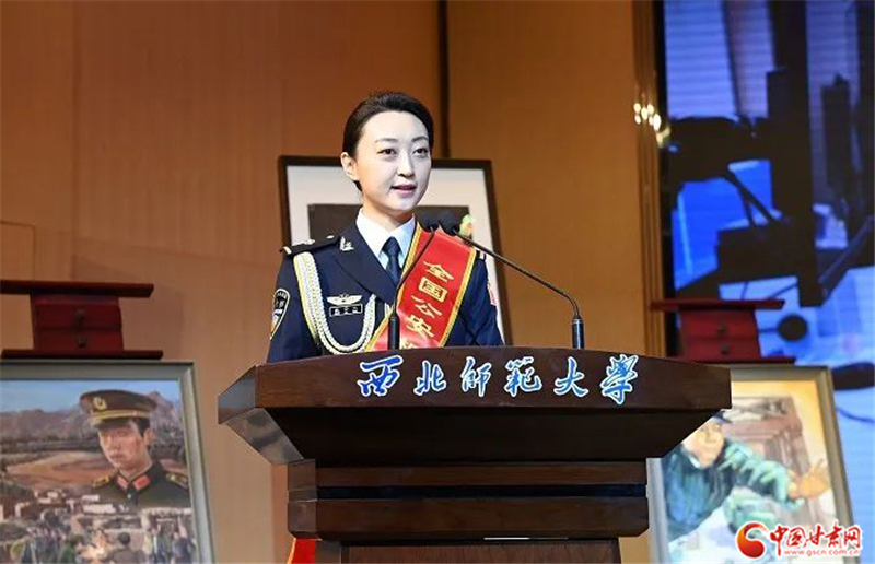 張俊宗表示,英雄先烈是我們民族的脊梁,通過(guò)聆聽(tīng)公安烈士和英模典型的感人事跡,真切地感受到“哪有什么歲月靜好,只不過(guò)有人替你負(fù)重前行”;真切地感受到和平之所以彌足珍貴,是因?yàn)橛腥藶槲覀儓?jiān)守捍衛(wèi)。他強(qiáng)調(diào),愛(ài)國(guó)主義是西北師大的優(yōu)良辦學(xué)傳統(tǒng)、教育底色和紅色基因。與蘭州公安攜手開(kāi)展“緬懷英雄先烈 弘揚(yáng)英模精神”活動(dòng),目的就是在全校上下?tīng)I(yíng)造“學(xué)習(xí)英雄、崇尚英雄,愛(ài)黨愛(ài)國(guó)、追求崇高”的濃厚氛圍,把愛(ài)國(guó)主義精神、英雄主義精神深植于校園的每個(gè)角落,賡續(xù)紅色基因,勇?lián)鷱?qiáng)國(guó)使命。
