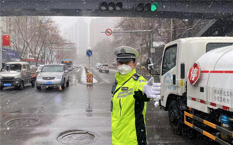 大隊(duì)領(lǐng)導(dǎo)實(shí)地查看道路通行情況,及時(shí)調(diào)整勤務(wù)模式和警力部署,確保降雪天氣各項(xiàng)安全“防控”措施落實(shí)到位。民輔警全員上路,強(qiáng)化重點(diǎn)路段巡邏管控和主要路口值守,對(duì)不具備通行條件車輛進(jìn)行勸返或提示繞行。通過(guò)鳴笛、喊話、閃爍警燈等措施,提醒駕駛員裝配防滑鏈,減緩車速、保持安全車距、注意觀察路面通行情況,引導(dǎo)車輛和行人安全有序通行。