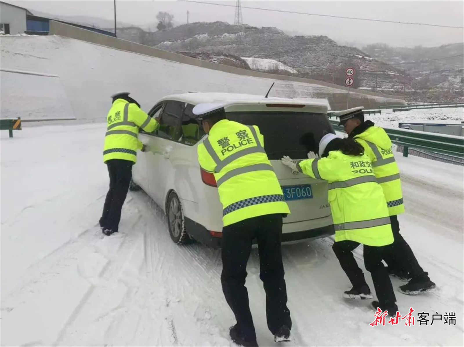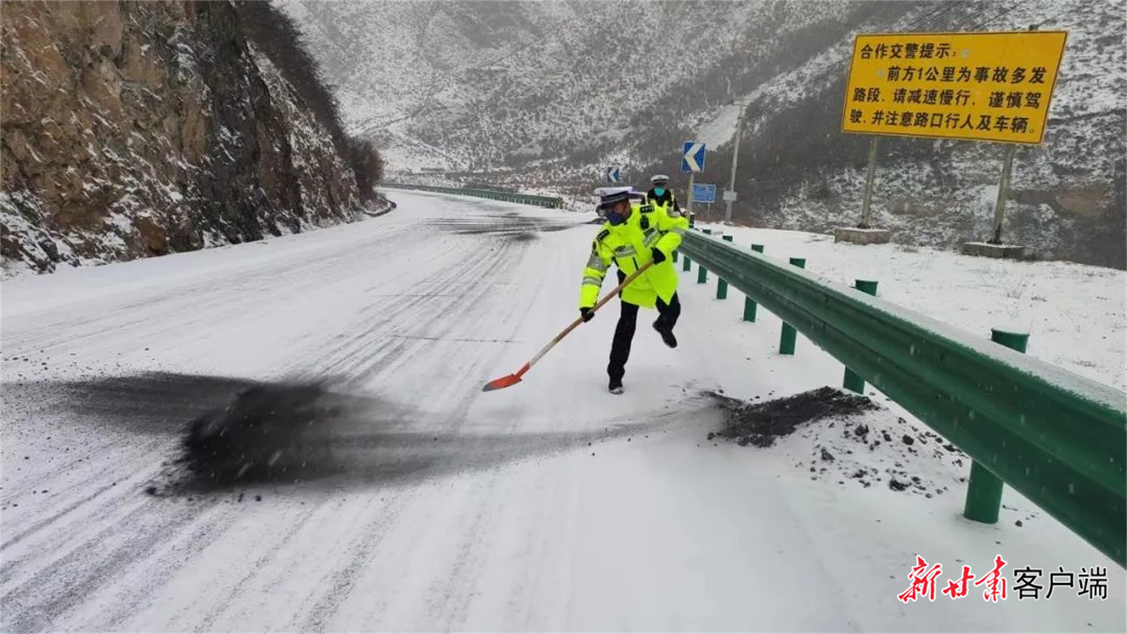 新甘肅客戶端訊(新甘肅·每日甘肅網(wǎng)記者 萬及敏)2月8日上午,甘肅多地出現(xiàn)降雪天氣,部分道路出現(xiàn)積雪結(jié)冰現(xiàn)象。為最大限度保障群眾出行安全,預(yù)防和減少道路交通事故的發(fā)生,全省公安機(jī)關(guān)1.2萬公安民輔警奮戰(zhàn)一線,加大重點(diǎn)路段巡邏管控力度,采取預(yù)警提示、除冰、引導(dǎo)車輛減速慢行、封閉道路、幫助群眾推車等措施,嚴(yán)防交通事故發(fā)生,為群眾的平安出行保駕護(hù)航。