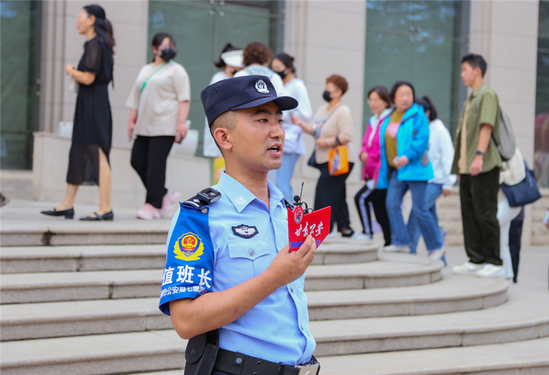 “我們?cè)诓┪镳^內(nèi)部開展游客分流、提醒引導(dǎo)、巡邏防控、排查安全隱患等工作,全力為游客打造隱患少、服務(wù)好的平安游覽環(huán)境。同時(shí),我們的交警同事也在周邊道路積極開展道路交通疏導(dǎo),根據(jù)車流量情況在不同路段進(jìn)行分流,保障游客車輛安全有序通行。”西站派出所副所長(zhǎng)魏相昆說(shuō),“甘肅省博物館周邊停車緊張,提醒游客盡量乘坐公共交通工具,如遇突發(fā)情況請(qǐng)及時(shí)和我們執(zhí)勤民警聯(lián)系,我們會(huì)全力提供幫助。”