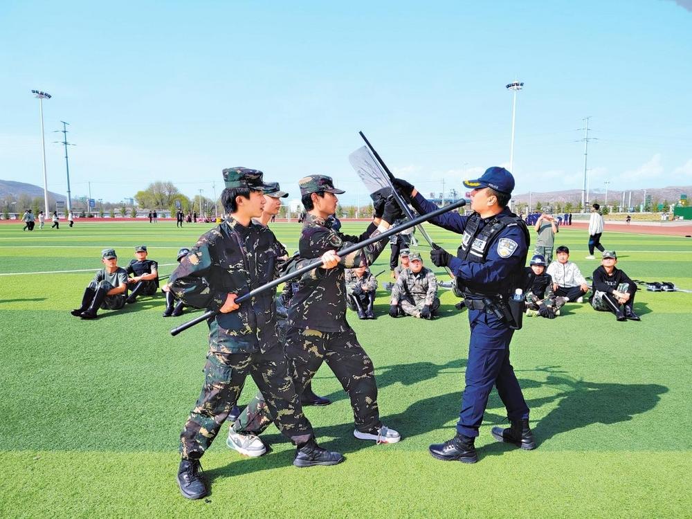 公安民警示范演練反恐防暴技能。4月11日,臨洮縣公安局組織警務(wù)實(shí)戰(zhàn)教官到定西市職業(yè)技術(shù)學(xué)校開(kāi)展反恐防暴演練培訓(xùn)。新甘肅·甘肅法治報(bào)通訊員李鴻昌攝